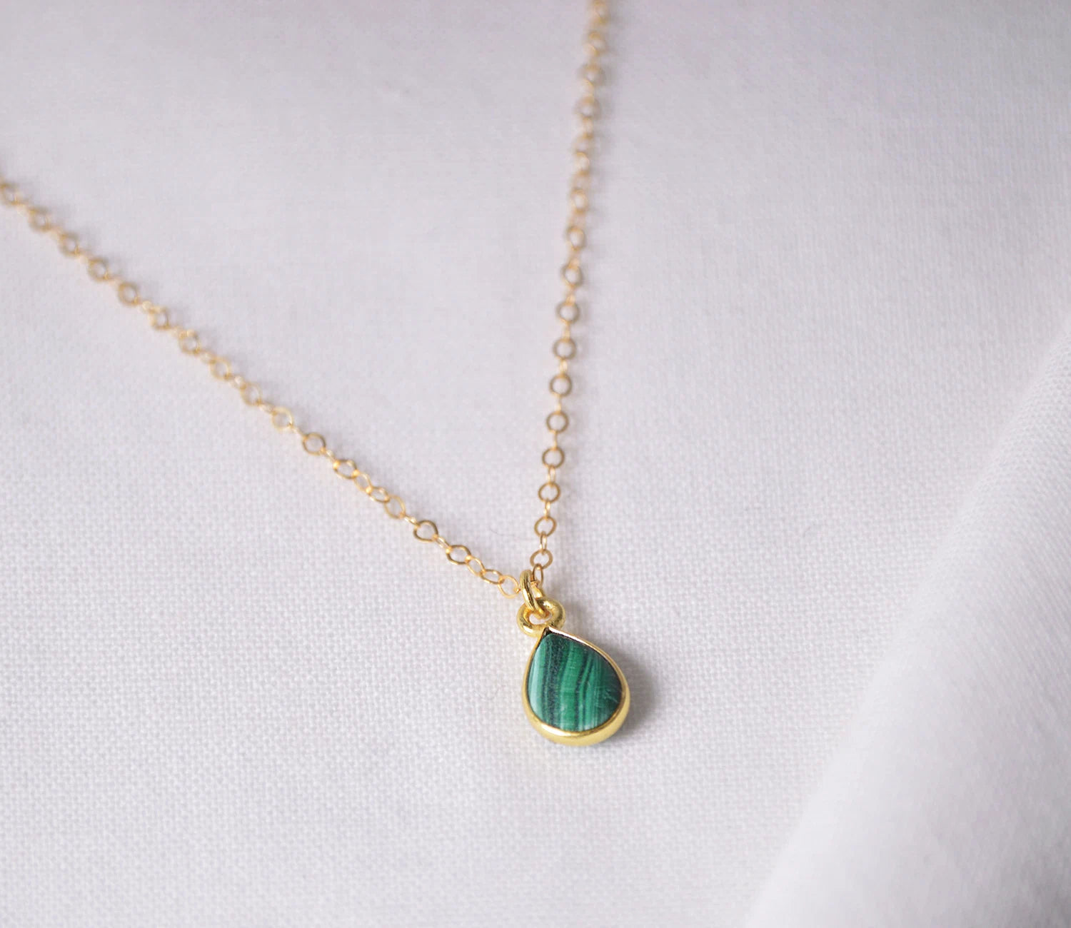 Zarte Goldkette mit Malachit-Anhänger