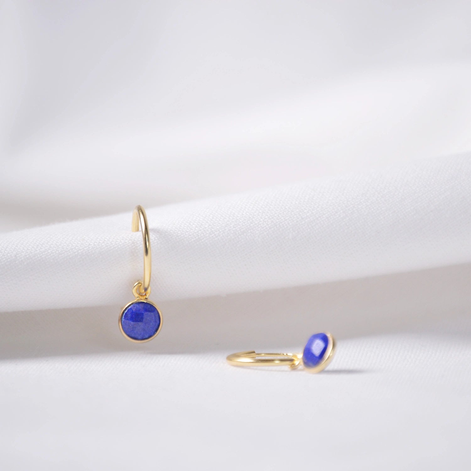 Verleihen Sie Ihrer Schmuckkollektion einen Hauch von Farbe und Nachhaltigkeit mit unseren handgefertigten Lapislazuli-Creolen! Jedes Paar besteht aus ethisch unbedenklichen Materialien und ist sorgfältig verarbeitet. Jedes Paar ist ein Unikat. Werten Sie jedes Outfit mit der einzigartigen Schönheit des natürlichen Lapislazuli auf und fühlen Sie sich wohl, weil Sie wissen, dass Ihr Kauf nachhaltige Praktiken unterstützt.