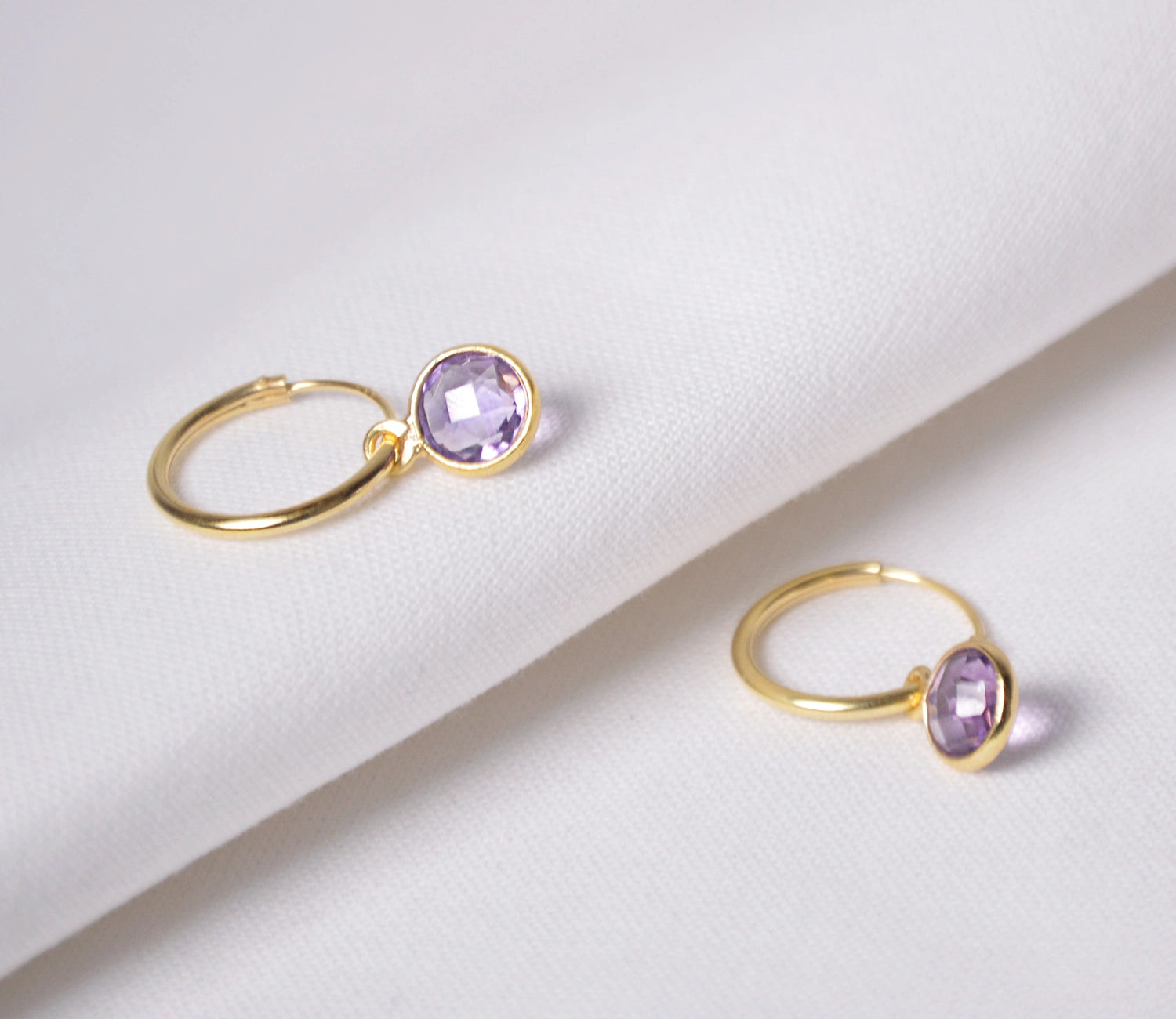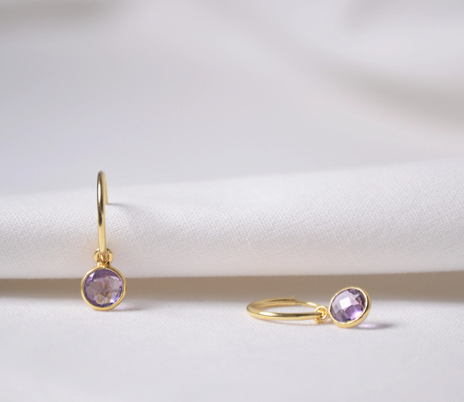 Crafted from ethically sourced gold, these earrings feature a lustrous hoop design that frames the deep purple amethyst gemstones with exquisite beauty. The amethyst, known for its calming properties, is said to promote clarity and tranquillity - making these earrings not just a beautiful accessory, but also one with meaning and significance.
